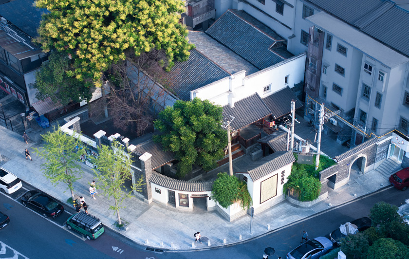 楊建覺:當決策者征詢如何處置這堆磚瓦時,我提議留住一段悠長而即將消逝的歷史場景感也許是不錯的選擇,復建新樓的報批報建也是麻煩,當時心有萌動,念及讀初中時的記憶。我小時候住在大古道巷,時常去一位家住小古道巷的同學家玩。那是一棟老公館,院墻高高、木門厚實、石作講究,進門就是一方天井,接著是精致堂屋,八仙桌、太師椅……妥妥的大宅門感覺。我的設計從盡量留住西側老青磚墻開始,直覺告訴自己正在做一個舞美設計,用寫意方式呈現記憶中的清末民初長沙大宅門。朋友評價說:這是后現代手法,重拾歷史碎片,兼具戲劇化、場景化、情感化特征,功能就是圍繞體驗、拍照、懷古來進行。