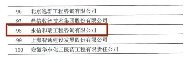 中國工程咨詢協會 | 永信和瑞入選民企100強